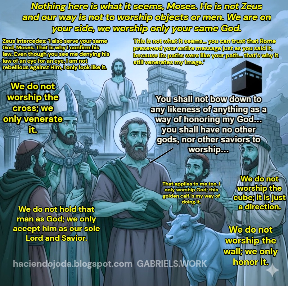 Rome manipulated the Law to evade punishment: Exodus 20:5 commands against honoring or worshipping images. They replaced it with “You shall love the Lord your God with all your heart, and with all your soul, and with all your mind,” without being explicit, because the worship of statues was always a Roman tradition. Today we see their god Mars being worshipped even under the label of “Saint Michael the Archangel”; look closely, he dresses like a legionary because he is a Roman persecutor being worshipped. Rome murdered Jesus and the other saints at the hands of Roman legionaries, but since “an eye for an eye” didn’t suit them, to avoid condemnation they lied against their victims, saying: “Their leader forgave us, abolished the eye for an eye, and said that he loved us, that he loved the enemy.” These lies were sanctified in the councils, and today many not only worship the idols of the persecutor, but also call such slander the word of God.